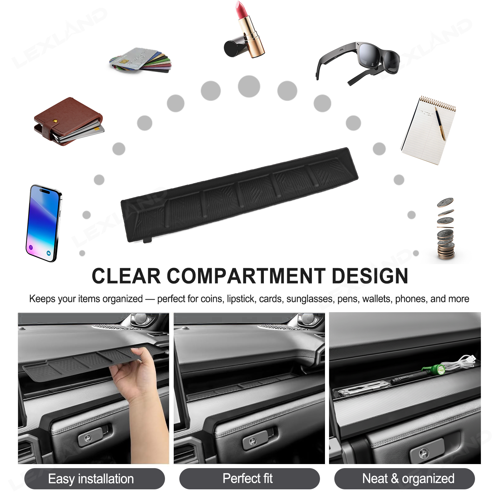 Enhanced Storage Efficiency: Thoughtfully divided compartments keep your console organized. Store everyday items such as cards, keys, coins, or phones neatly and within easy reach, no more searching while driving.